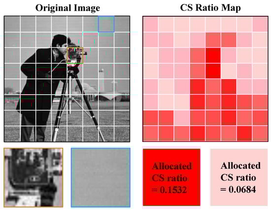 Another optimization aspect of the CS codec is to improve the adaptability while processing different images [,]. The key idea is to exploit the saliency information of images, and then allocate more sensing resources to these salient regions but fewer to non-salient regions. Figure 10 demonstrates the illustration of adaptive sampling-reconstruction.