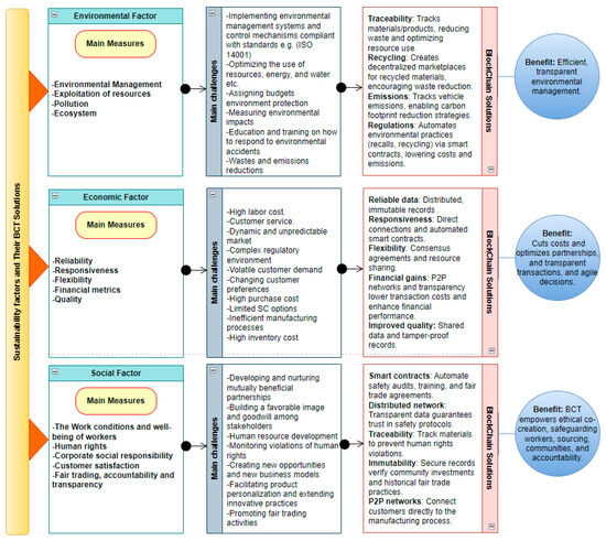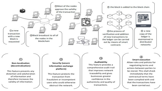 BCT can address the challenges of manufacturers and other SC participants and support key SC management purposes such as “cost reduction”, “quality improvement”, “speed”, “reliability”, “risk mitigation”, “sustainability”, and “flexibility” [7,20]. The study of [102] emphasized that efficiency through BC-based SC technology can result in increased market reach, as well as balanced and equitable trade relationships and pricing structures for SC participants. This would then improve transparency and traceability in SC processes and play a role in mitigating and resolving current sustainability challenges that intersect social justice, economic sustainability, and environmental protection. Therefore, among the various operations that are anticipated to undergo significant advancements with the advent of BCT, the SC demands particular attention. The key features of BCT that are critical for application and practical use in SCs and a smart manufacturing system are as follows:
