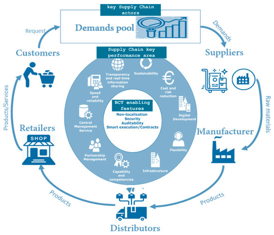 The essential characteristics (“features”) of BCTs create a great interest in the context of industry and SCs, with the potential to become Industry 5.0 [63]. Considering how BCTs disrupt different segments, it is inevitable that SCs and manufacturers will reap the benefits of it.