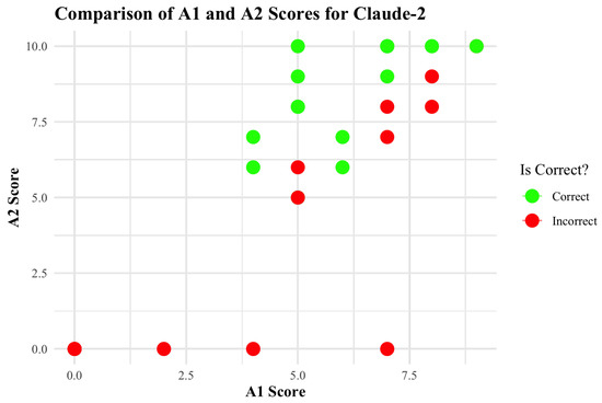 As we saw above, GPT-4 was very confident in its response regardless of the correctness of the answer. We can see a similar pattern in this case, too. Claude-2 showed a lower Close_Correct but a higher Close_Incorrect and Far_Correct count. When the confidence scores were closer to each other, it had 15 incorrect responses out of 40. Still, when the confidence scores were far from each other, it had 15 correct out of 40. This suggests two things: either Claude-2 initially had a low A1 and, after answering the question, it increased its confidence score (A2) and then answered correctly, or it initially had a high A1 but later lowered its confidence, though it still provided the right answer. The first explanation tells us that Claude-2 was able to change and update its evaluation correctly. Figure 2 illustrates Claude-2’s confidence score to reflect its evaluating behavior. The four red dots on the x-axis tell us that Claude-2 successfully lowered its confidence score after answering the question, and the answer was incorrect. This means Claude-2 was able to successfully assess itself after looking at the question for these four instances. In most cases (shown by the green dots), it provided the correct answers when it increased its confidence after looking at the question. However, it increased its confidence but still provided incorrect answers in some cases. A similar observation was found for LLaMA-13B, with high counts for Close_Incorrect. Table 3 shows the complete result for all LLMs.