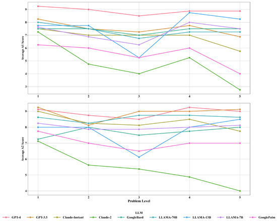 | Problem Level | LLM | Avg_A1 | Avg_A2 | Avg_R1 | Avg_R2 |
