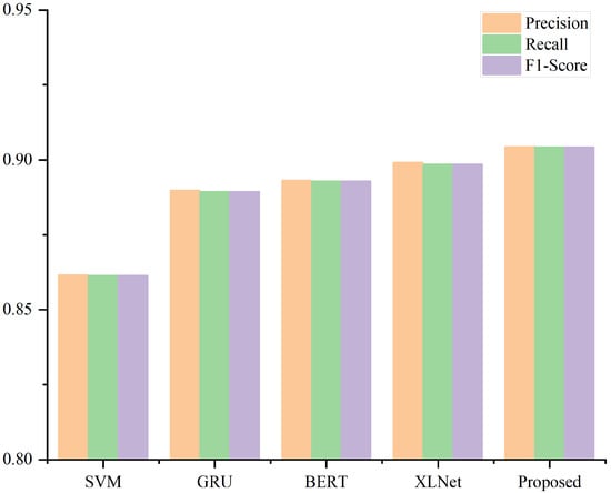 Table 4 shows the results of traditional machine learning methods for Chinese cyberbullying detection. For the cyberbullying and non-cyberbullying categories, the SVM method achieves the highest F1-score values of 0.8623 and 0.8595, respectively, which exceeds other traditional machine learning algorithms. It can be seen that SVM can achieve better performance on text classification tasks.