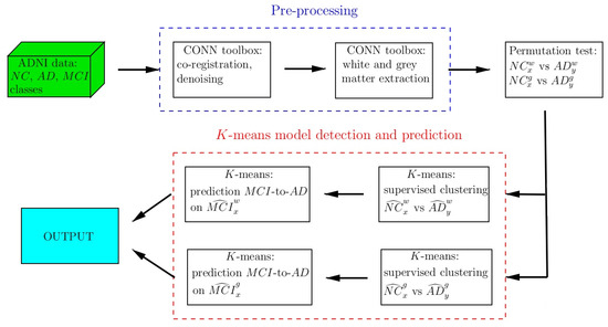 - Jack, C.R., Jr.; Bernstein, M.A.; Fox, N.C.; Thompson, P.; Alexander, G.; Harvey, D.; Borowski, B.; Britson, P.J.; Whitwell, J.L.; Ward, C.; et al. The Alzheimer’s Disease Neuroimaging Initiative (ADNI): MRI methods. JMRI-J. Magn. Reson. Imaging 2008, 27, 685–691. [Google Scholar] [CrossRef] [PubMed]