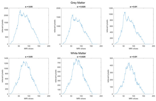 - A crucial aspect of our research, related to point 1, concerns the possibility of using exclusively the significant pixels instead of the whole MRI images to significantly lower the computational costs (in time and resources) when performing statistics on the Alzheimer’s disease course. One can realize the benefits of shrinking the data size by about when nonlinear statistical analysis has to be performed or, even more, when machine learning predictive studies or feature detection are required. As a matter of fact, the step with the highest resource consumption in our research was the detection of the significant pixels, carried out by performing a permutation test on all the MRI image pixels, which lasted some days.Furthermore, lowering the computational costs of the classification task set the path for a real-time process to aid specialists’ examinations (and predictions) of the Alzheimer’s status and development.