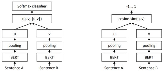 - Reimers, N.; Gurevych, I. Sentence-BERT: Sentence Embeddings using Siamese BERT-Networks. In Proceedings of the 2019 Conference on Empirical Methods in Natural Language Processing and the 9th International Joint Conference on Natural Language Processing (EMNLP-IJCNLP), Hong Kong, China, 3–7 November 2019; pp. 3982–3992. [Google Scholar]