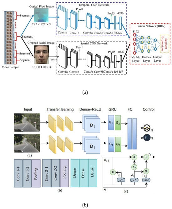 - Hasani, B.; Mahoor, M.H. Spatio-temporal facial expression recognition using convolutional neural networks and conditional random fields. In Proceedings of the 2017 12th IEEE International Conference on Automatic Face & Gesture Recognition (FG 2017), Washington, DC, USA, 30 May–3 June 2017; pp. 790–795. [Google Scholar]