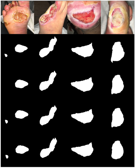- Mahbod, A.; Schaefer, G.; Ecker, R.; Ellinger, I. Automatic Foot Ulcer Segmentation Using an Ensemble of Convolutional Neural Networks. In Proceedings of the 26th International Conference on Pattern Recognition, Montreal, QC, Canada, 21–25 August 2022; pp. 4358–4364. [Google Scholar] [CrossRef]