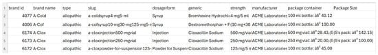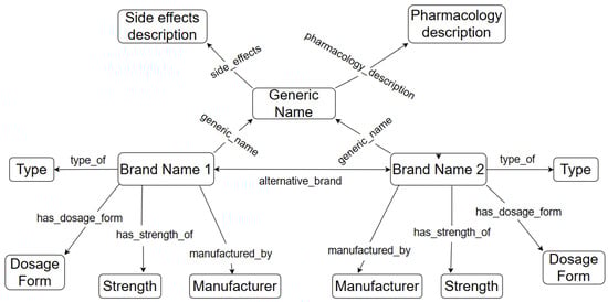 Since we are constructing a medicine dictionary with a limited number of attributes, we decided to keep a limited number of relations in the knowledge graph. The relation types are symmetric, complex, and asymmetric. A symmetric relation is the one in which the positions of the head and tail can be swapped. Let us take an example of a symmetric relation—(A-Cold, alternative brand, Brohexin). The reverse triple—(Brohexin, alternative brand, A-Cold) is true as well. Not all relationships are symmetric, but an inverse relationship can be created easily. For example, (‘A-Cold’, ’has dosage form’, ’Syrup’) can be written as (‘Syrup’, ‘is a form of dosage for’, ‘A-Cold’). A complex relation is defined as a more intricate or multi-layered connection between entities. Complex relation—(A-Cold, pharmacology description, description); this is true because of—(Bromhexine Hydrochloride, pharmacology description, description). More explanations can be found on this in the hierarchical structure and inheritance section. An example of an asymmetric relation is “(A-Cold, type of, allopathic)”. An example of the architecture of the structured triples can be found in