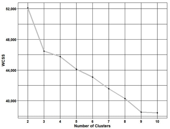 In this study, we used the k-prototypes clustering algorithm because it is highly suitable for data sets with both numerical and categorical input features. The k-prototypes clustering algorithm is a hybrid algorithm that was derived from the popular k-means clustering algorithm [46]. While the distance between the numerical features was obtained through the Euclidean distance function, the distance between the categorical features was obtained through a simple matching coefficient. Equation (1) shows the distance function between the observations and the cluster’s center: