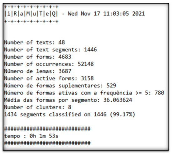 In this study, the relationship between data mining and the open-source software Iramuteq, used as a text analysis tool, can be justified because Iramuteq is based on R and is designed to assist in analyzing large datasets of textual data. Textual analysis constitutes a critical component of data mining, wherein meaningful information is extracted from unstructured data, such as, for example, documents [57,58,59].