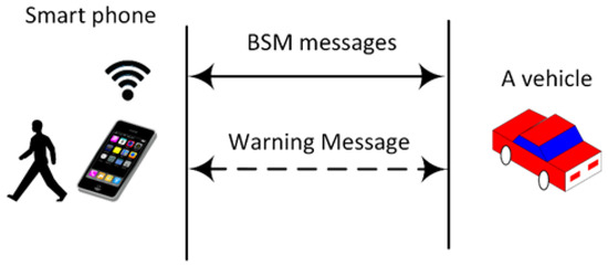 - Tahmasbi-Sarvestani, A.; Nourkhiz Mahjoub, H.; Fallah, Y.P.; Moradi-Pari, E.; Abuchaar, O. Implementation and Evaluation of a Cooperative Vehicle-to-Pedestrian Safety Application. IEEE Intell. Transp. Syst. Mag. 2017, 9, 62–75. [Google Scholar] [CrossRef]