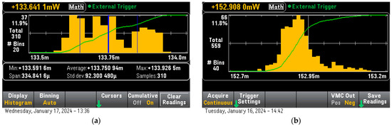 This DMM also provides a range of mathematical functions for data analysis. Users can perform basic arithmetic (addition, subtraction, multiplication, and division) and more complex calculations like square root, square, absolute value, and logarithm. We used this function in order to calculate the power consumption from current readings. The device also features data acquisition and storage capabilities, allowing for sequential measurement recording over time, crucial for later analysis. Users can customize data acquisition by setting parameters like sampling rate and reading count, controllable via the front panel or remotely. The multimeter automatically captures and saves data per these settings. Additionally, the DMM can create, display, and export trend charts, providing a comprehensive view of measurement patterns over time.