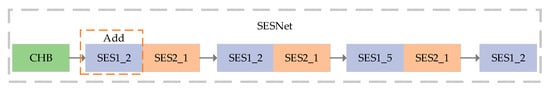 Initial high-resolution features carry important detail information in the backbone network, which is critical for the identification and localization of small targets. Current lightweight backbone networks tend to rapidly reduce the resolution of these features, resulting in the loss of many layers and channels while maintaining a high resolution. Although this reduces the computational complexity, it also means that a lot of feature information is lost. To improve the detection performance of small targets, this study proposes a novel lightweight backbone network called S-ESNet, the structure of which is illustrated in Figure 2. The network mainly consists of one (Convolution, Batch Normalization, and Hardswish Activation) CHB module, three SES2_1 modules, and four SES1_X modules, where X denotes 1, 2, or 5. Compared with the initial ESNet, S-ESNet adds two extra ES Block modules in the first downsampling stage. By delaying the primary stage of downsampling and increasing the computational resources, the network can extract and save more low-level semantic information [22], which in turn improves the detection accuracy of objects thrown from tall buildings.