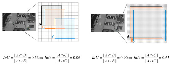 Figure 6 demonstrates that objects thrown from tall buildings are typically small and consist of limited pixels, which results in significant IoU fluctuations—ranging from 0.53 to 0.06—even with minor positional changes. Such fluctuations markedly impact the accuracy of label assignments. By contrast, larger objects that contain more pixels experience less variation in IoU; a similar positional offset might only reduce the IoU from 0.90 to 0.65. The conventional IoU methods and their variations thus show a high susceptibility to the position deviation of these small targets, potentially causing a noticeable drop in the performance of anchor-based detectors.
