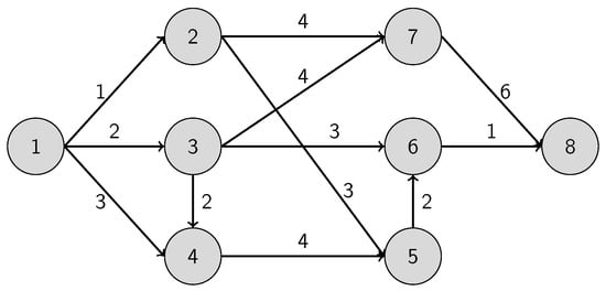 Consider a weighted directed graph . The vertex set is denoted by , while the edge set is described by and finally the corresponding positive distances are in . We can use the function as an assignment to identify the corresponding distance of an edge: for all . The graph is assumed to be connected and simple in the context that there are no self-loops or multi-edges in it. The edge that connects the vertex i and the vertex j can be referred to as .