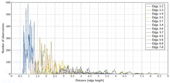 We performed 20 simulations with 500 episodes in each for both the Q-compression method and the grid-based method. The granularity of the grid was set to . Figure 4 shows the distance distribution histogram by edges with a granularity of unit.