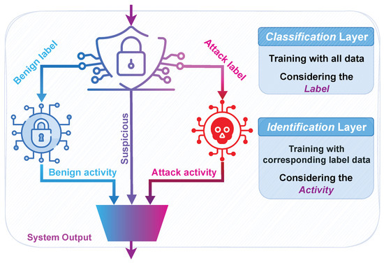 Next, to dataset creation, this research proposes a network traffic characterization model to detect different network activities. In crafting a robust detection model, we advocate a multi-layered approach to maximize cost effectiveness. The first layer focuses on distinguishing benign traffic from non-benign activity, while subsequent layers identify specific network behaviors for detailed classification. This approach enhances efficiency and minimizes computational costs.