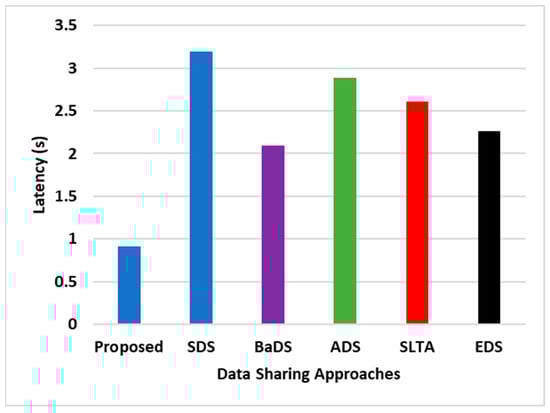 Figure 4 illustrates that SEaaS reduces latency by about 16% compared to other analyzed data-sharing models. Factors contributing to latency in blockchain-based IoT architectures include data volume, blockchain scalability, transaction processing speed, network latency, and block confirmation times. While SDS enhances security with chaotic maps and RSA algorithms, it complicates storage, retrieval, and computational processes, increasing data transmission times. Conversely, the SEaaS model employs structured, decentralized blockchain operations, facilitating flexible and rapid transactional assessment and enhancing path and route determinacy, thus reducing latency.