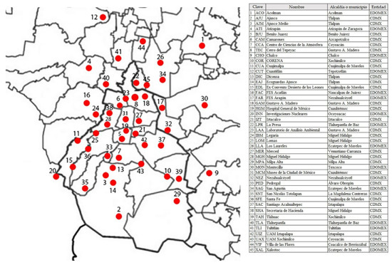 Data can be accessed on http://www.aire.cdmx.gob.mx/default.php (accessed on 20 March 2024).