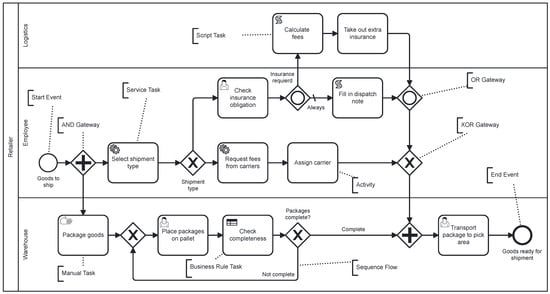 - Aagesen, G.; Krogstie, J. BPMN 2.0 for Modeling Business Processes. In Handbook on Business Process Management 1: Introduction, Methods, and Information Systems; vom Brocke, J., Rosemann, M., Eds.; Springer: Berlin/Heidelberg, Germany, 2015; pp. 219–250. [Google Scholar]