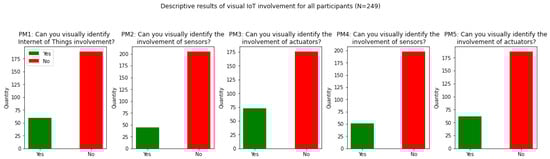 RQ3 examined the combined label-based and visual discernibility of IoT involvement, indicating that the majority of the study participants were able to identify IoT aspects based on both task labels and task types. However, the overall accuracy of identifying IoT aspects remained mediocre.