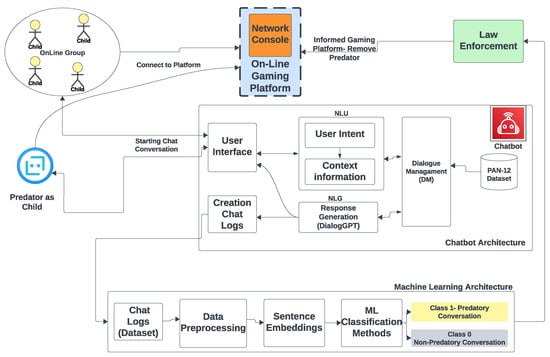 Research has emphasized the severity of these threats, with a notable proportion of child abuse cases being traced back to interactions on social media, video chat rooms, and gaming platforms []. The pressing need to protect vulnerable children online has driven the search for effective early detection and intervention strategies against potential predators.