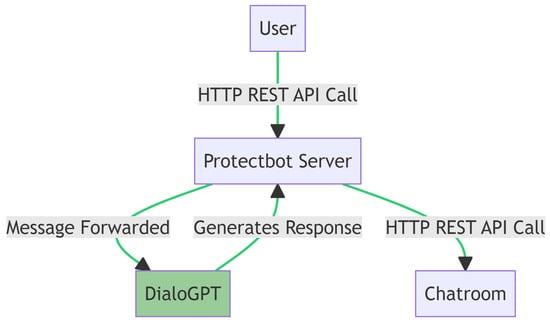 Figure 2 illustrates the Protectbot’s conversational language generation model architecture. It outlines the steps from receiving a user’s message to posting an AI-generated response back into the chat. This process is critical for maintaining real-time interaction, which is essential for the system’s credibility and effectiveness in engaging potential predators.
