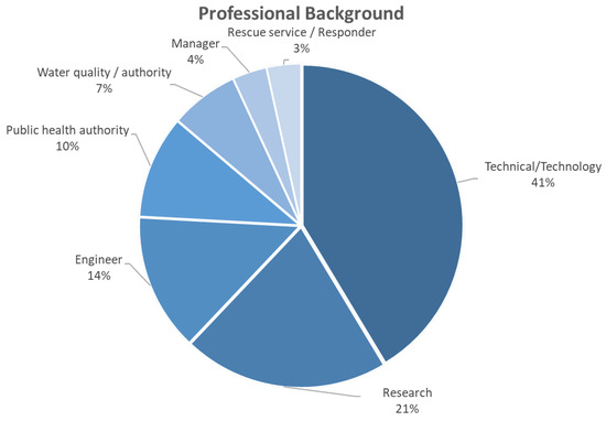 The participants involved in the evaluation were 29 professionals with diverse backgrounds and significant work experience (i.e., over 5 years). Specifically, as depicted in Figure 3, the majority of participants (41%) were technical partners from several companies, while a significant proportion of the attendees held positions associated with water quality and served as First Responders (24%).