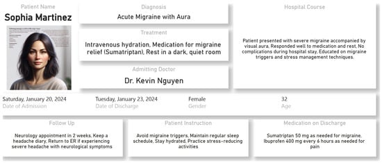 As shown in Figure 1 and Figure 5, a specially engineered GPT prompt can be used for generating patient discharge messages. Microsoft Power Automate with GPT API automatically generates patient discharge summaries with specifically guided headings, like Diagnosis, Treatment, Patient Instructions, Medications on Discharge, etc. The complete list can be seen from Appendix A using the prompt of Box 1. Many of these headings (presented in Appendix A) are required for assessment of severity and predicting the chances of hospital readmission, which would be performed in the next stage. As seen from Figure 6, Figure 7, Figure 8 and Figure 9, GPT generated the discharge summaries synthetically (i.e., not real patient information).