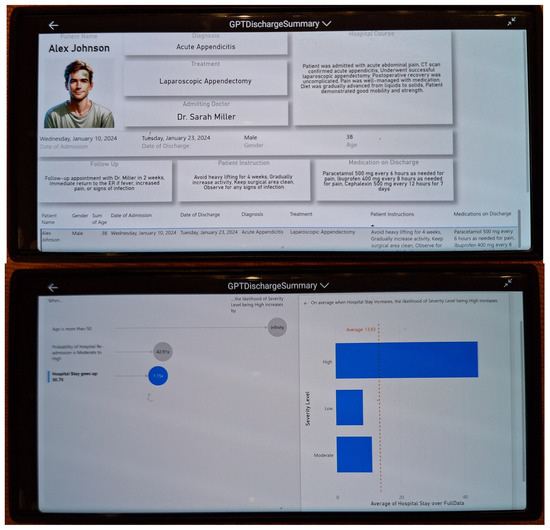 This research introduces a groundbreaking methodology to address the challenge of data scarcity in medical machine learning by leveraging the capabilities of GPT. The study proposes a comprehensive approach that utilizes GPT for synthetic data generation and subsequent feature extraction, offering a transformative solution to the limitations imposed by the scarcity of labeled medical data. The empirical demonstration involving the synthetic generation of patient discharge messages serves as a practical testament to the feasibility and effectiveness of the proposed methodology, showcasing its potential to revolutionize the integration of GPT into the realm of medical machine learning. Figure 12 shows the deployment of the GPT-based solution in the latest Samsung Galaxy S23 Ultra mobile phone using Microsoft Power BI’s deployed App. The application of this deployment process has been showcased in recent studies through the utilization of low-code platforms [27,30,31,32,34]. As this study exclusively solved the labeled data scarcity for training machine learning models within medical domain (as discussed in [1,2,10]), it needs to be demonstrated how the generated synthetic data could be used in machine leanirng. Figure 12 shows that automated regression identified “Hospital Stays” to be highly corelated with the severity of the patient. The AI-driven insight shown in Figure 12 (within Samsung Galaxy S23 Ultra Mobile) shows that out of the 19 fields, Patient’s Age, Chance of Hospital readmission, and Hospital stays are correlated with severity. This automated regression using “Key Influencer” visualization of Microsoft Power BI has been reported in [73]. The previous section evaluated the validity of the generated medical data using manual evaluation by an expert medical professional. Now, this section demonstrates the use of the automated machine learning algorithm (i.e., regression to obtain the correlated variables) on the synthetic data.