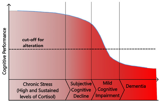 Cognitive performance vs. AD continuum due to chronic stress [4].