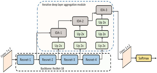 Although the adoption of CenterNet solves the bounding box representation problem, and we directly use the dot annotation provided by the dataset, CenterNet in its original form may suffer from a loss of fine-grained information and may be unable to address the second problem. This is because CenterNet employs subsequent pooling operations, which leads to the downsampling of input images. This downsampling potentially results in the loss of crucial information about small objects and may result in many false positives. To address this problem, we modified the original CenterNet by incorporating the iterative deep layer aggregation strategy, which combines features from both shallow and deep layers of the network. This strategy allows for better context understanding while retaining the spatial details of tiny heads. The integration of shallow- and deep-feature layers helps the network address the downsampling problem by providing the network with more comprehensive and precise information about the small heads.