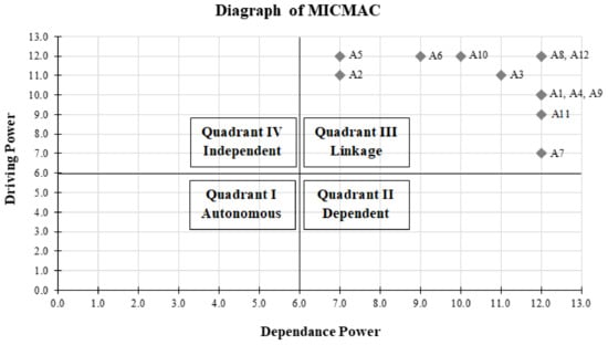 The third technique, MICMAC analysis, is a technique used to assess the relative influence and interactions among factors in a decision-making problem [8]. In the context of MCDM, a MICMAC analysis helps identify driving and dependent factors and their impact on the overall decision problem [8,9,10]. Previous studies by Zabihi et al. [1] demonstrated the application of a MICMAC analysis in understanding the dynamics of complex decision problems. They applied a MICMAC analysis to identify the key drivers and barriers influencing the adoption of renewable energy technologies in rural areas, highlighting its utility in understanding the dynamics of sustainable energy transitions. Sharma and Kumar [8] utilized a MICMAC analysis to explore the interrelationships among factors affecting innovation capabilities in small and medium enterprises (SMEs), providing insights for enhancing innovative management practices. They proposed an extension of the MICMAC analysis called fuzzy-MICMAC, which incorporates fuzzy sets to handle the uncertainty and imprecision in the assessment of factor interdependencies. Chen et al. [9] introduced a hybrid approach, combining MICMAC analysis with AHP for the prioritizing factors influencing sustainable supply chain management practices, enhancing the robustness of decision-making. Sahoo et al. [10] conducted a comparative study of MICMAC analyses and the DEMATEL (Decision-Making Trial and Evaluation Laboratory) technique for analyzing the factors influencing corporate social responsibility (CSR) performance, highlighting the strengths and limitations of each approach. They also proposed an integrated framework combining a MICMAC analysis with ISM for analyzing the interrelationships among the factors influencing sustainable manufacturing practices, providing a comprehensive understanding of the factor dynamics. Tushar et al. [30] presented a case study on the application of a MICMAC analysis to assess the factors influencing the adoption of green building technologies in the construction industry, facilitating informed decision-making for sustainable construction practices. Nalluri et al. [31] used a MICMAC analysis to understand the dynamics of the factors affecting the consumer adoption of electric vehicles, providing insights for policymakers and industry stakeholders to promote sustainable mobility solutions.