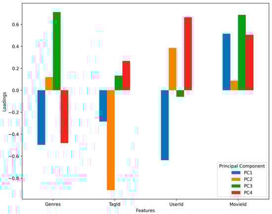 | Principal Component | Genres | TagId | UserId | MovieId |