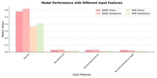 - What is the impact of incorporating diverse input feature sets, including user identifiers, item identifiers, and content attributes, on the predictive performance of recommendation models?