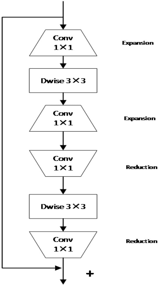 Inverted residual block is mainly a structure proposed for devices with limited computing resources, which is usually used to construct lightweight deep neural networks. It consists of three convolutional layers, of which the first and third convolutional layers are both 1 × 1 convolutional layers and the second convolutional layer utilizes depthwise separable convolution.