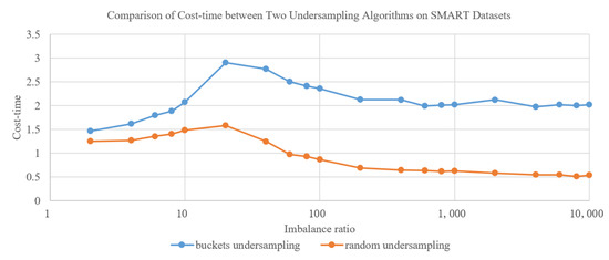 Figure 3 shows the comparison of cost–time between two undersampling algorithms on SMART datasets with different balance ratios. The cost–time of bucket-based undersampling has been slightly increased compared to random undersampling, but it is still on the same order of magnitude.