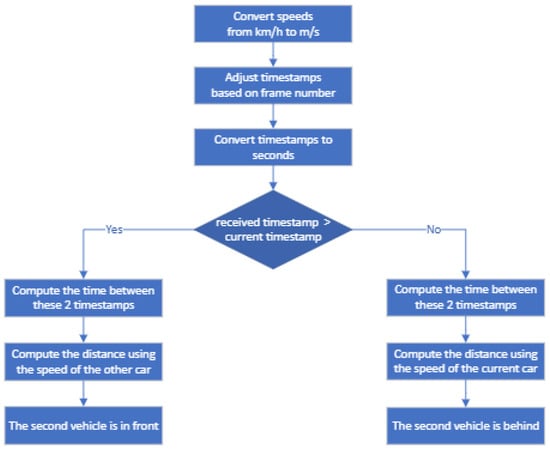 After passing the handshake system described before, each vehicle will only receive messages from nearby vehicles. The message will contain data about GPS positioning and processed image data. The steps these data will take are presented in Figure 3 and described in detail in the following subsection.