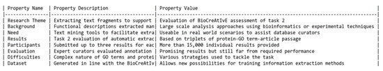 Another example of structured papers’ properties in the comparison “Survey of sequencing techniques” (Figure 2) is as follows: