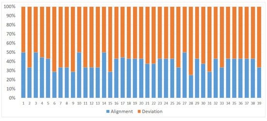 Proportional values of semantic alignment and deviation between ORKG properties and GPT-generated dimensions.