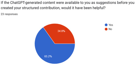 - If the ChatGPT-generated content were available to you as suggestions before you created your structured contribution, would it have been helpful?