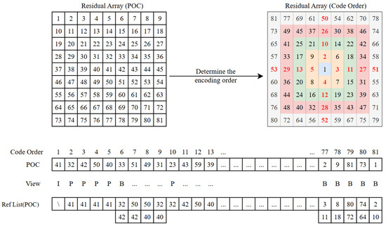 The specific prediction algorithm and coding steps are also illustrated in Figure 3. The arrays are collected into a one-dimensional sequence based on the predetermined coding sequence. Subsequently, the reference list for each view is established, and the residual view is derived according to the reference list. This coding order and hierarchical structure facilitate progressive transmission in applications, both between and within layers, as elaborated upon in Section 3.3.