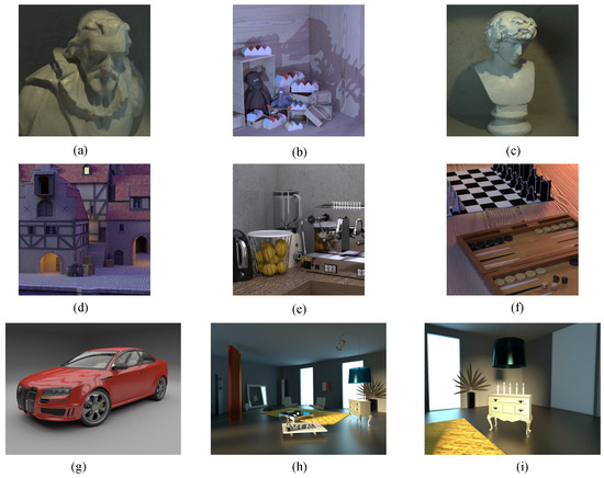 The presentation of the test images. (a) Cotton, (b) dino, (c) antinous, (d) medieval, (e) kitchen, (f) boardgames, (g) car, (h) room, and (i) corner.