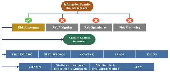 The theoretical risk analysis method is described, and control recommendations are provided based on the risk profile. These frameworks are typical; thus, decision makers need to know how risk impacts their business rather than the cost of implementing security controls. Therefore, the comparison point is implementing a security control if its current cost is greater than the risk exposure. In this study, we present a systematic critical literature model and compare alternatives. Given these restrictions, this work introduces ISCP, a revolutionary information security control prioritization method. ISCP’s scientific and quantitative methods make risk assessments more objective. Using multi-criteria TOPSIS, the ISCP model evaluates security solutions based on vulnerabilities, threat severity, and repair costs, unlike previous models. ISCP gives tangible advice to assist organizations in minimizing ambiguity and subjectivity. The model’s self-organizing and flexible architecture lets companies prioritize controls when resources are few. Previous research demonstrated the ISCP model via a case study, including a small- and medium-sized enterprise (SME) in Kuala Lumpur, Malaysia. This practical illustration showcased the tangible efficacy of the model in determining the importance of crucial security protocols [21]. This method enhances cybersecurity management decision making in numerous organizational situations, as evidenced in case studies. Based on the literature analysis, Figure 1 shows the taxonomy of the related work and the scope of information security risk management. By addressing shortcomings in the framework and providing a foundation for risk assessments based on evidence, the ISCP approach enhances information security risk management. This improves the process of control evaluation in ISRM, assisting organizations in reliably and effectively prioritizing essential controls based on clear and practical guidelines. A significant amount of information on ISRM processes has been published by standards organizations, academic institutions, and industry organizations [22]. Risk management requirements and procedures can be standardized due to the widespread adoption of standards and models. Furthermore, using these standards and models raises an organization’s security level by providing a common baseline for processes [22,23,24]. The use of these models for risk assessment is discussed below, along with their limitations and drawbacks for this discussion. The rest of the sections are organized as follows. Section 2 describes ISRM theory. Section 3 presents risk assessment frameworks and challenges in control assessment methods. Section 4 covers the overall challenges in control assessment methods. Section 5 presents the recommended solutions for the future direction. Section 6 concludes this study.