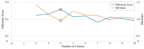 - Davies, D.; Bouldin, D. A cluster separation measure. IEEE Trans. Pattern Anal. Mach. Intell. 1979, PAMI-1, 224–227. [Google Scholar] [CrossRef]