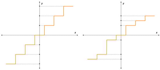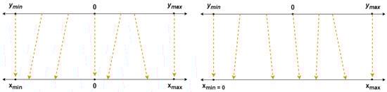 For scalar quantization, decisions must be made about the type of quantization to use, such as signed or unsigned, and symmetric or asymmetric. These decisions are typically influenced by the data distributions within the datasets and can vary accordingly. Signed quantization creates both negative and positive quantization points in the quantization domain. Unsigned quantization uses only the positive side of the number line. Additionally, symmetric and asymmetric quantization refers to the treatment of the positive and negative sides of the quantization domain. However, implementing asymmetric quantization is more challenging due to the additional processing involved. Figure 5 illustrates the methods of symmetric–signed and asymmetric–unsigned quantization.