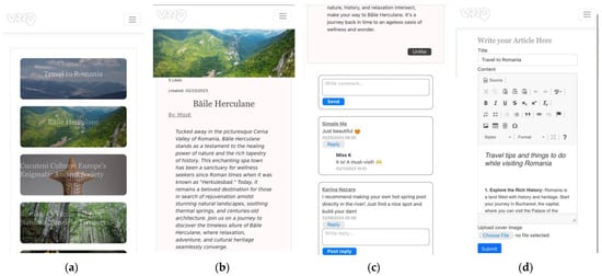 The integration of the CKEditor [77] library in the blog’s text editor allows for rich content creation. Users can easily style text and incorporate images, facilitating the production of visually appealing and well-formatted articles (Figure 4d).