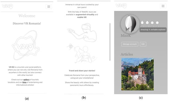 Overall, the presentation layer of VRRO delivers an accessible, user-friendly, and aesthetically pleasing experience, reflecting the platform’s commitment to making Romania’s cultural and natural heritage globally accessible and adhering to various accessibility standards [81].