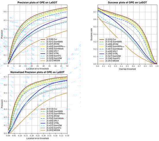 - Fan, H.; Lin, L.; Yang, F.; Chu, P.; Deng, G.; Yu, S.; Bai, H.; Xu, Y.; Liao, C.; Ling, H. Lasot: A high-quality benchmark for large-scale single object tracking. In Proceedings of the IEEE/CVF Conference on Computer Vision and Pattern Recognition, Long Beach, CA, USA, 16–20 June 2019; pp. 5374–5383. [Google Scholar]