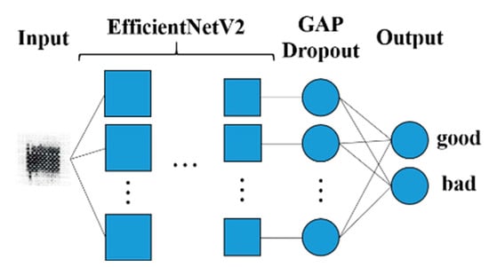 To build a high-accuracy pattern misalignment classification model, we used pretrained EfficientNetV2, which achieves both learning efficiency and high classification accuracy through Neural Architecture Search (NAS) and model scaling. Hyperparameter tuning for EfficientNetV2 [23] was performed using Optuna. The implementation involved using TensorFlow 2.0 in Python, then adding Global Average Pooling (GAP) [24] and dropout to the final layer of the pretrained EfficientNetV2 to adapt it for binary classification. GAP reduces the number of parameters compared to fully connected layers. We propose a method for hyperparameter tuning of EfficientNetV2-based image classification by modifying the results tuned by Optuna deliberately [25].